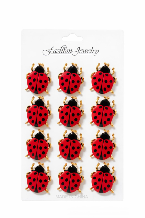 Acest set de 12 brose martisor cu buburuza rosie este un simbol traditional al norocului, bucuriei si protectiei, oferit la inceput de primavara ca mesaj de optimism si energie pozitiva. Buburuza este asociata cu vestea buna, fericirea si implinirea dorintelor, fiind unul dintre cele mai indragite simboluri ale martisorului. Fiecare brosa are un model individual atent finisat, cu rosu intens, puncte negre si detalii aurii care evidentiaza forma delicata si vesela. Designul compact permite purtarea usoara pe haine, genti sau accesorii, fiind potrivit pentru toate varstele. Setul este ideal pentru oferire individuala, cadouri simbolice de 1 Martie sau vanzare sezoniera cu impact vizual puternic.