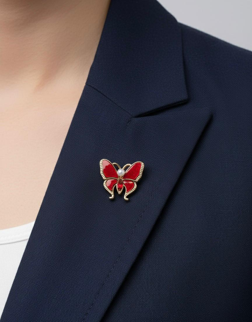 Set de 12 brose martisor cu model fluture elegant, realizate in ton auriu, decorate cu email colorat, cristal decorativ central si perluta alba, simbol al puritatii si al primaverii. Fluturele este asociat cu transformarea, renasterea si norocul, fiind un simbol perfect pentru martisor.