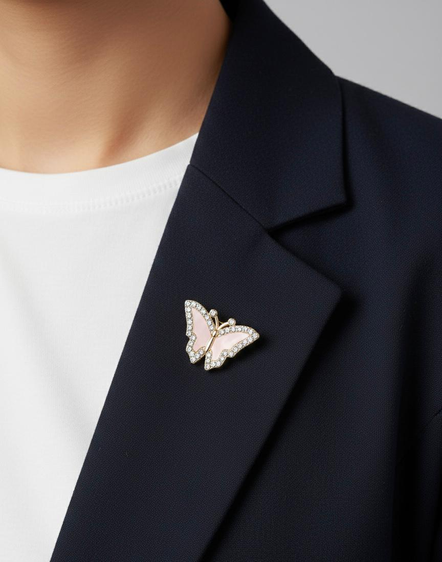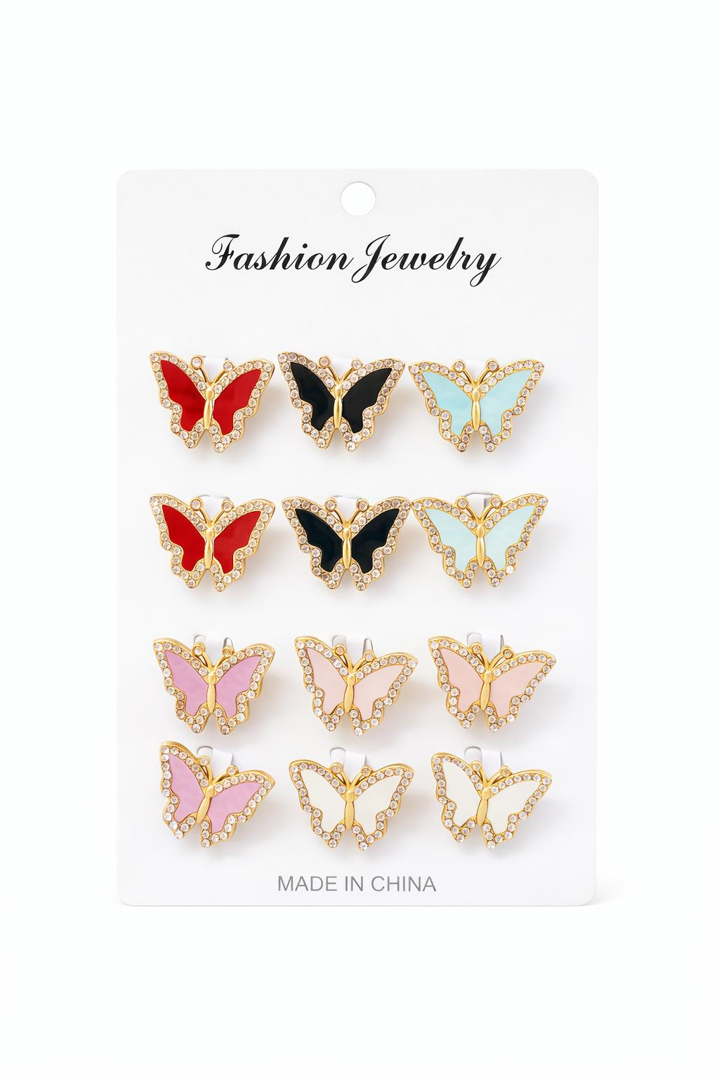Set de 12 brose martisor cu fluture elegant auriu, decorat cu strasuri stralucitoare si email colorat, in nuante variate. Fluturele este un simbol puternic al transformarii, renasterii si norocului, fiind asociat cu inceputurile frumoase ale primaverii.