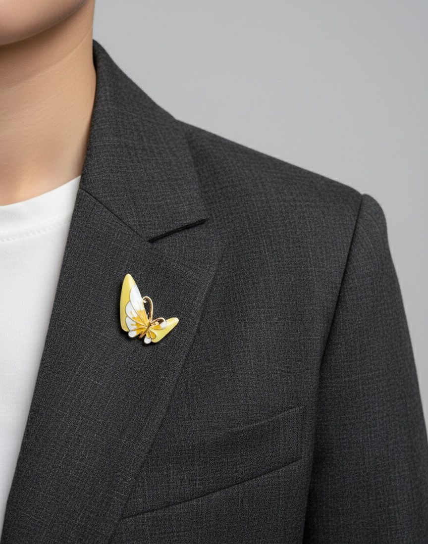 Brosa are un design elegant, cu finisaj auriu si accente translucide deschise, care ofera un aspect luminos si feminin. Forma gratioasa a aripilor sugereaza libertatea si optimismul, fiind ideala pentru a fi oferita ca martisor sau cadou simbolic.