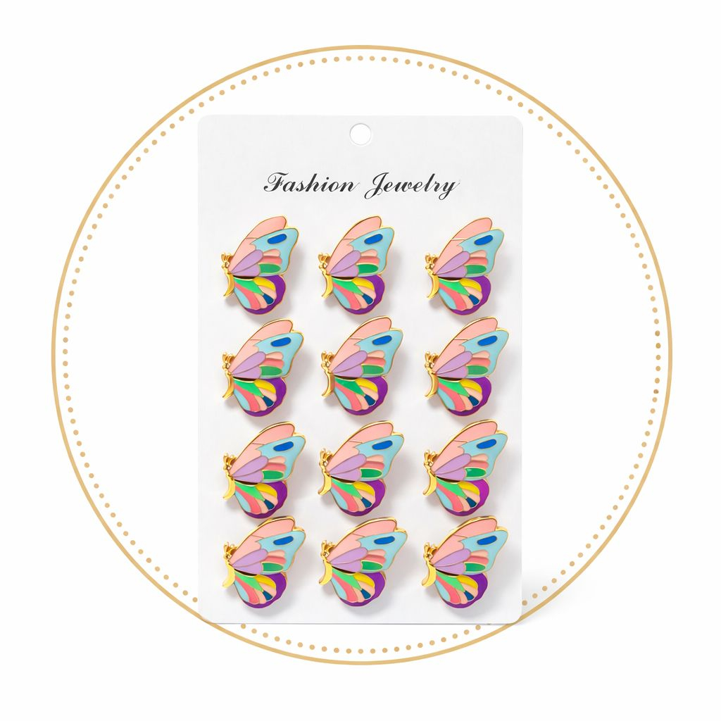 Set de 12 brose martisor cu model de fluture multicolor, un simbol puternic al transformarii, bucuriei si energiei pozitive. Fluturele reprezinta schimbarea in bine, libertatea si renasterea, fiind perfect asociat cu inceputul primaverii si traditia martisorului.
