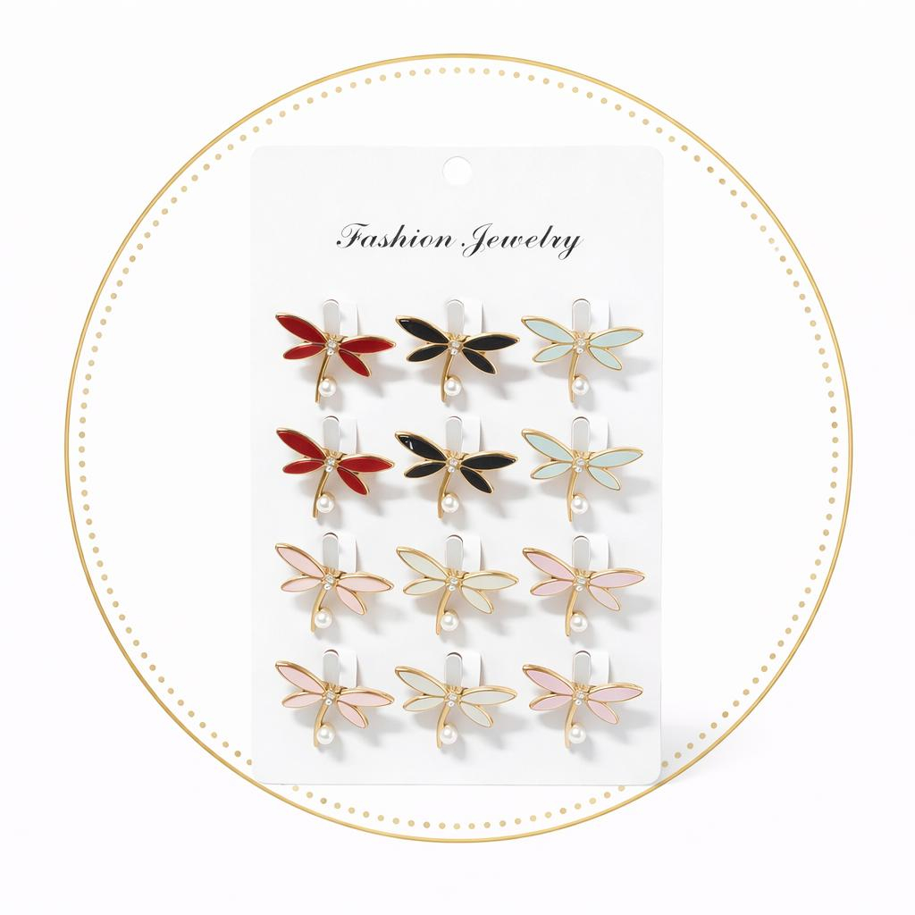 Set de 12 brose martisor cu model libelula, simbol al echilibrului, transformarii si sperantei. Libelula este asociata cu adaptabilitatea, claritatea si energia pozitiva, fiind un simbol potrivit pentru inceputul primaverii si al noilor etape.