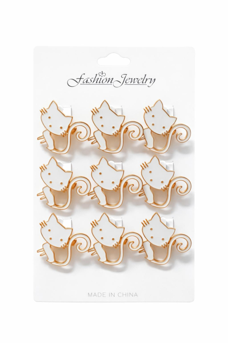 Acest set de 12 brose martisor cu model pisica alba este un martisor delicat si modern, incarcat de simboluri pozitive, oferit la inceput de primavara ca semn de afectiune si noroc. Pisica este asociata cu protectia, intuitia si echilibrul interior, fiind considerata un simbol al elegantei si al energiei pozitive. Modelul individual impresioneaza prin designul stilizat, cu suprafata alba si contur auriu fin, care ofera un aspect rafinat si armonios. Forma jucausa si liniile cursive transforma fiecare brosa intr-un accesoriu placut si usor de purtat pe haine, genti sau accesorii. Setul este ideal pentru oferire individuala, cadouri simbolice de 1 Martie sau completarea colectiilor de martisoare cu tematica moderna.