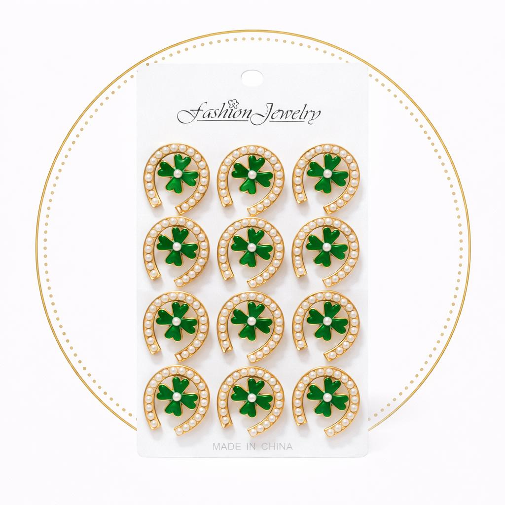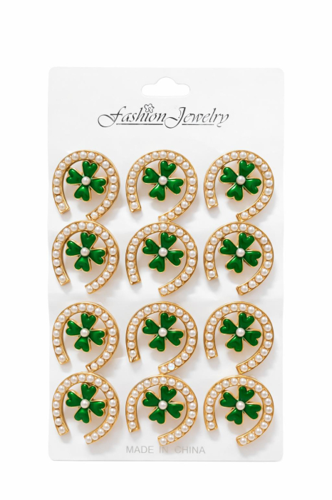 Acest set de 12 brose martisor imbina doua simboluri puternice ale norocului, potcoava si trifoiul cu patru foi, fiind un cadou traditional cu semnificatie profunda pentru inceputul primaverii. Potcoava este asociata cu protectia, succesul si indepartarea energiilor negative, iar trifoiul verde simbolizeaza norocul rar, prosperitatea si echilibrul. Fiecare brosa are un model individual elegant, cu finisaj auriu si decor perlat, care evidentiaza trifoiul central si ofera un aspect rafinat si festiv. Dimensiunea compacta permite purtarea usoara pe haine, genti sau accesorii, fiind potrivita pentru toate varstele. Setul este ideal pentru oferire individuala, martisoare de colectie sau vanzare sezoniera de 1 Martie.