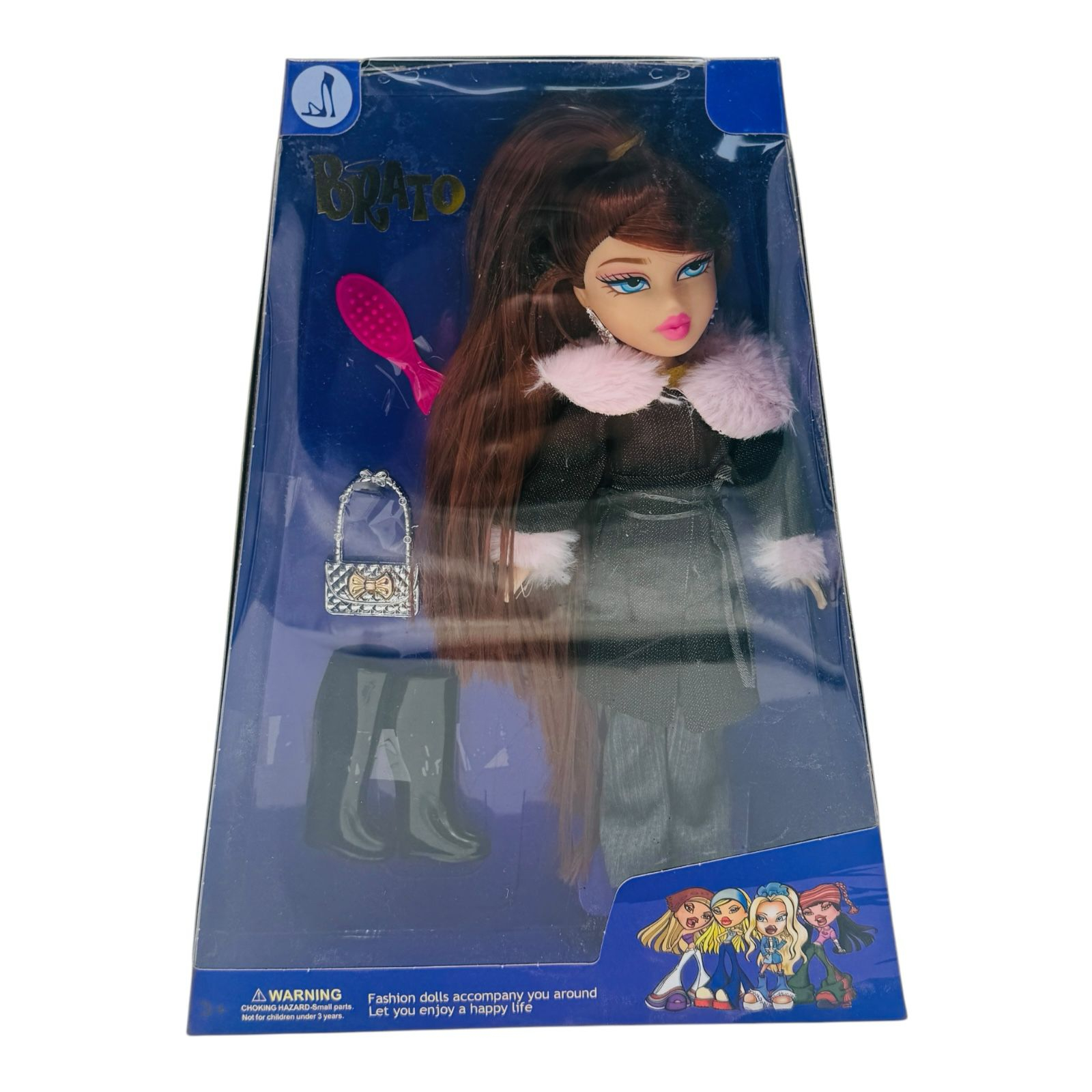 Pregateste-te pentru sezonul rece cu papusa Fashion Diva Winter Glam! Imbracata intr-un costum elegant cu detalii fine si accente de blanita roz, aceasta papusa emana stil si rafinament. Poseta chic si pantofii asortati completeaza tinuta, iar coafura sofisticata adauga un plus de eleganta. Parul lung permite diferite stilizari, facand aceasta papusa un cadou perfect pentru micii pasionati de moda si glamour!