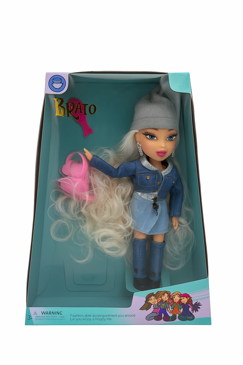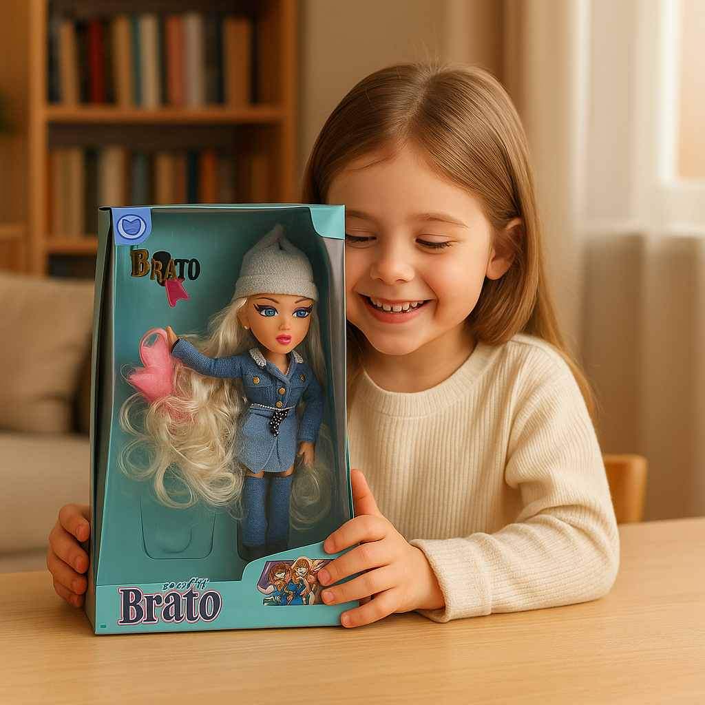 Papusa Brato Fashion este alegerea perfecta pentru fetitele care adora moda si stilul urban! Imbracata complet în denim – jacheta moderna, fusta asortata si cizme în acelasi ton – papusa impresioneaza prin eleganta si atitudine. Caciula gri ii completeaza tinuta cool, iar parul ei extrem de lung, ondulat si voluminos permite nenumarate coafuri creative.
