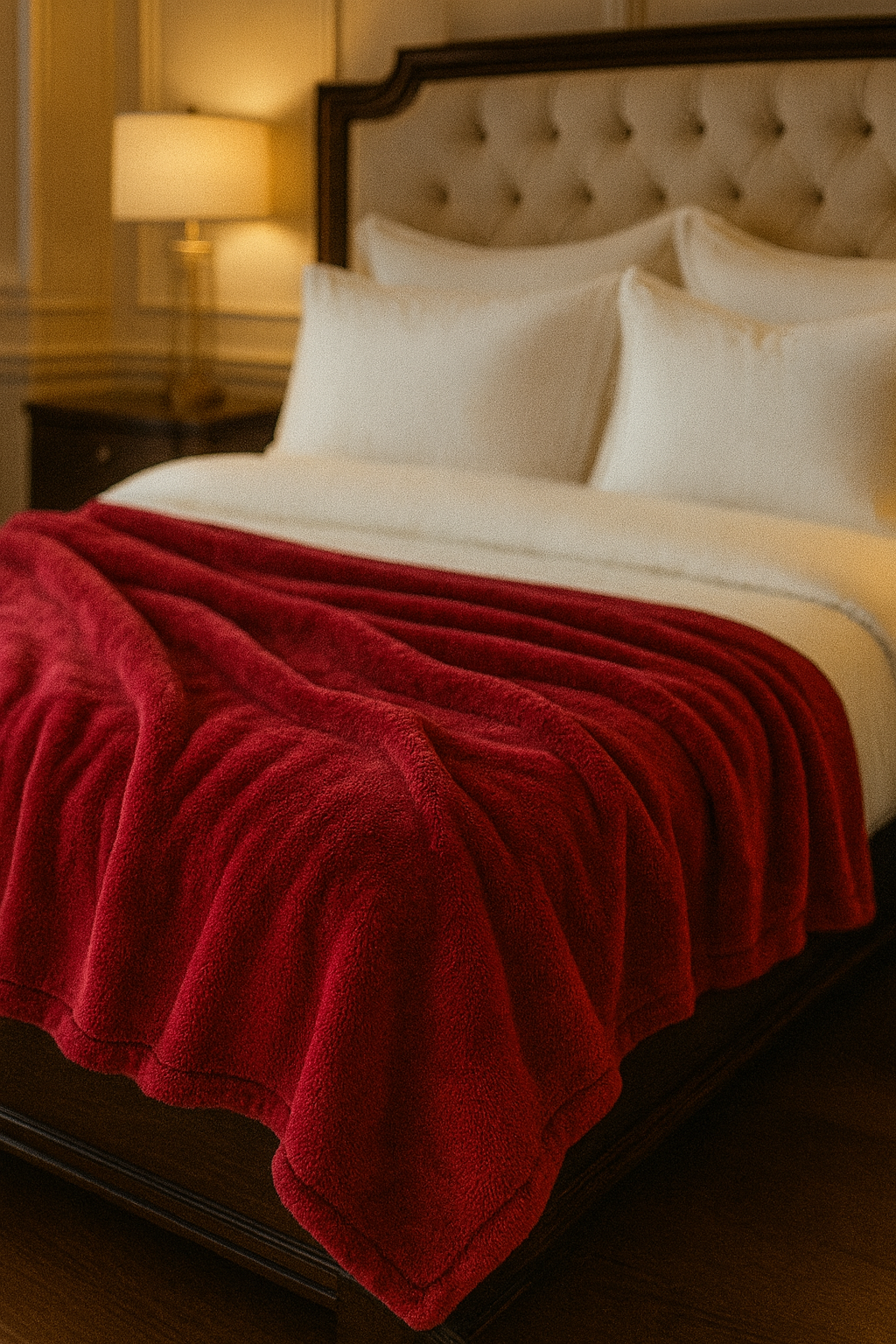 Adu un plus de eleganta si confort dormitorului cu aceasta patura Cocolino rosie 200x230 cm, fabricata din microfibre groase si ultra-pufoase. Cu o greutate de aproximativ 1 kg, patura ofera caldura placuta si un nivel ridicat de confort, fiind ideala pentru serile racoroase sau pentru relaxare zilnica.