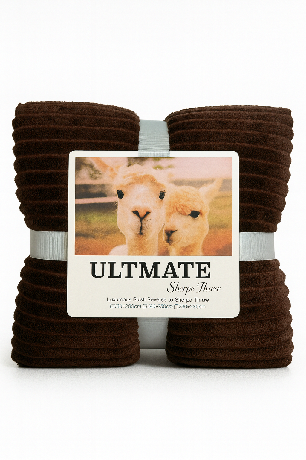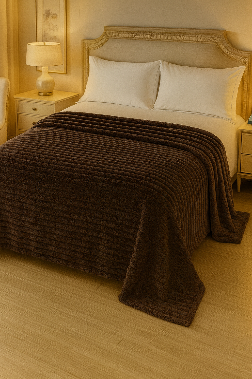 Patura Pufoasa Cocolino cu Sherpa 200x230 cm – Maro Inchis, Model Ribbed