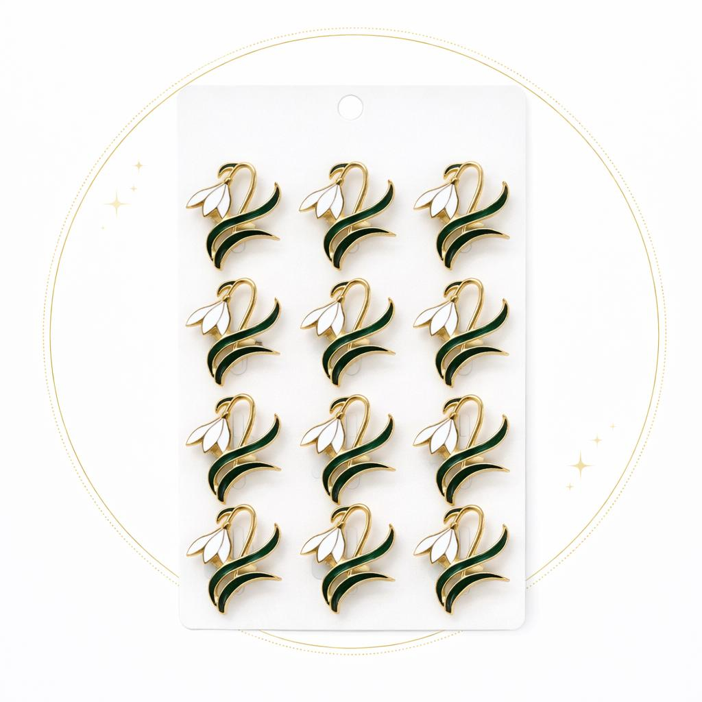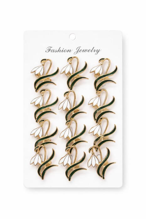 Reinterpreteaza simbolul puritatii cu acest set 12 brose Martisor, 17x10 cm, Ghiocel auriu / negru. Combinatia contrastanta de culori ofera un aspect pretios si contemporan ghiocelului clasic, transformand acest martisor intr-o brosa eleganta ce poate accesoriza cu succes orice tinuta de primavara.