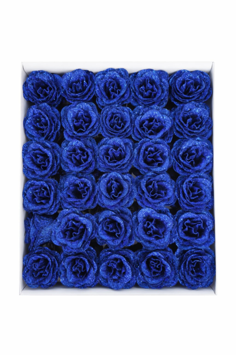 Setul contine 30 de trandafiri artificiali cu sclipici, in nuanta albastru royal, ideali pentru decoratiuni moderne, aranjamente florale elegante, evenimente speciale sau cadouri de impact. Trandafirii sunt realizati din spuma sintetica de calitate, cu un finisaj sclipitor care ofera un efect vizual intens si rafinat.