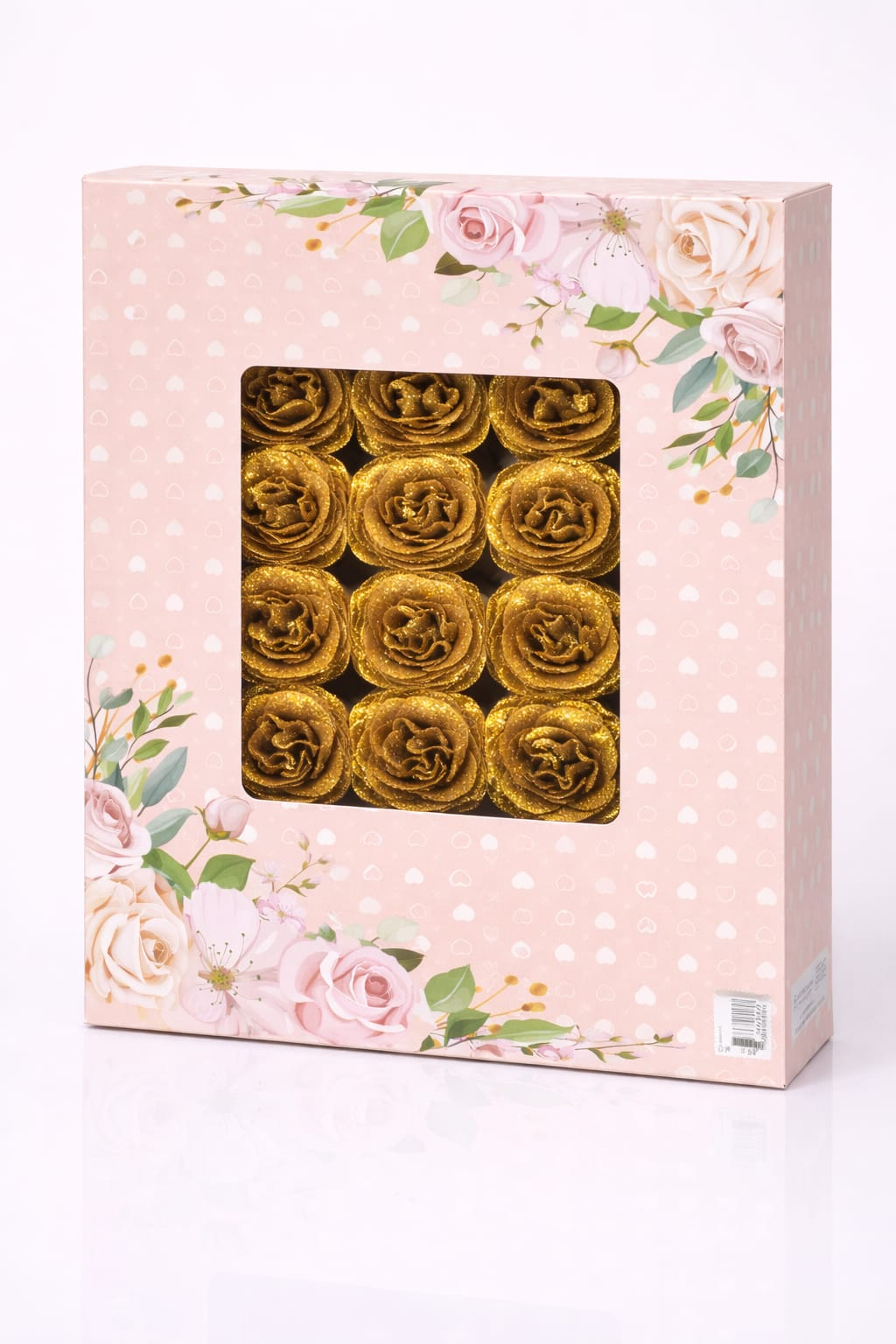 Set decorativ compus din 30 trandafiri artificiali cu sclipici, realizati cu atentie la detalii pentru un aspect elegant si luxos. Trandafirii au o textura fina, sunt acoperiti cu particule discrete de sclipici si sunt aranjati uniform intr-o cutie decorativa, ideala pentru cadouri sau aranjamente florale.