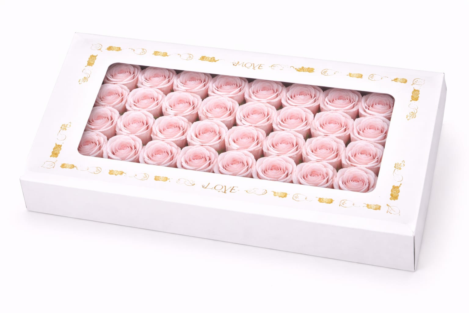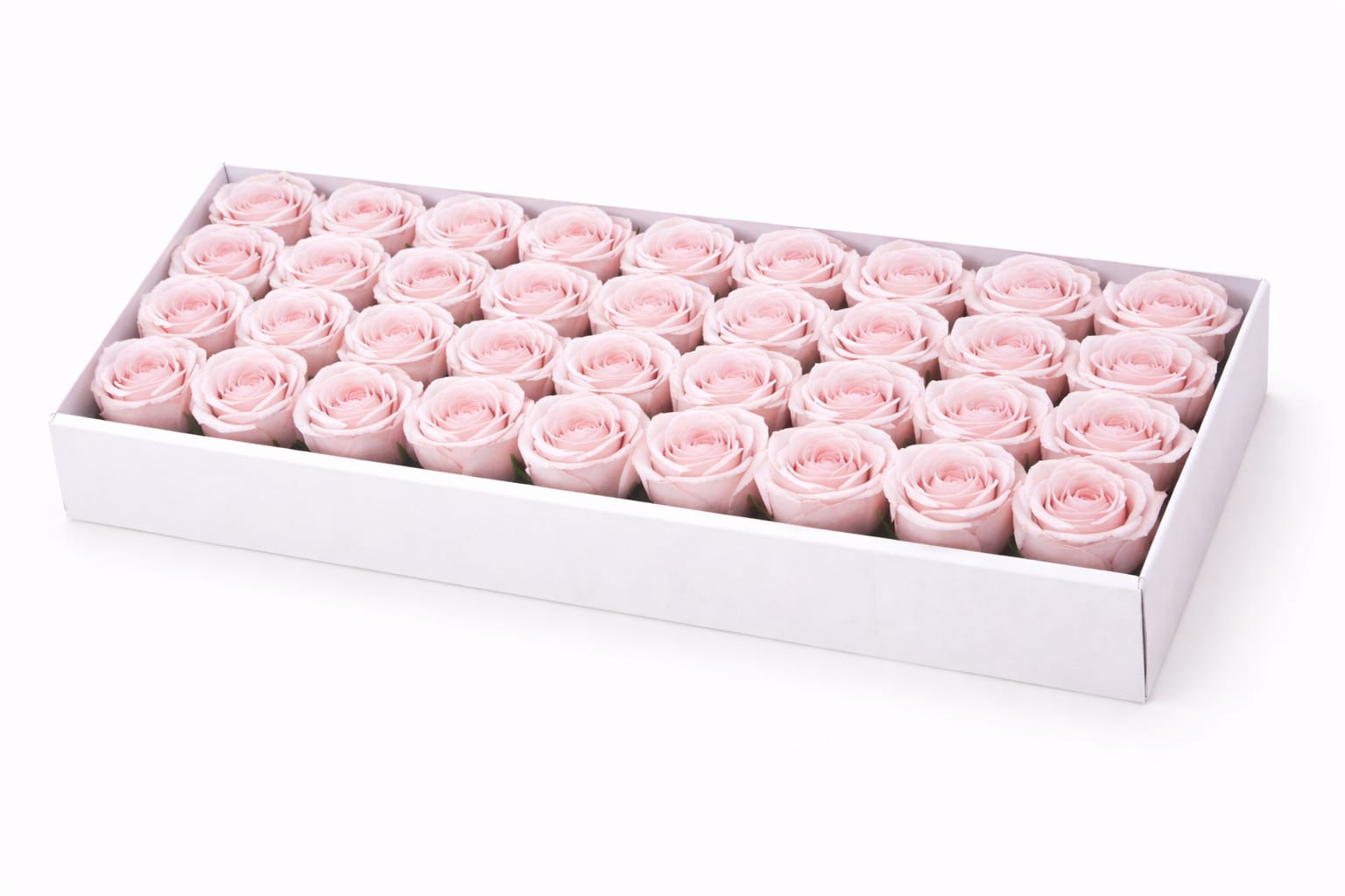 Setul este alcatuit din 50 de trandafiri de sapun parfumati, aranjati uniform intr-o cutie dreptunghiulara eleganta, ideala pentru cadouri delicate si rafinate. Trandafirii au un aspect realist si o culoare roz pal subtila, eleganta si romantica, potrivita pentru decoruri fine si ocazii speciale.